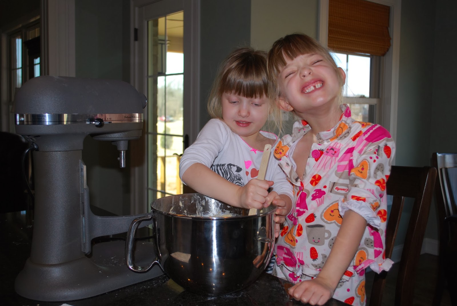 girls can safely sit and watch me cook breakfast, which substitutes for our